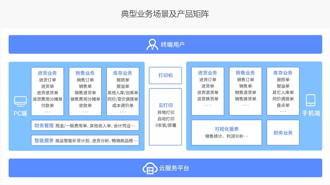 采用云服務技術,為用戶提供進銷存業務財務一體的企業資源管理平臺,對關鍵業務數據進行統計分析